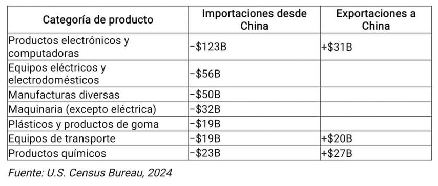Las exportaciones chinas hacia EEUU son en gran medida sustituibles. Ante los aranceles, los consumidores estadounidenses pueden optar por proveedores alternativos. El balance comercial de 2024 demuestra esta vulnerabilidad: