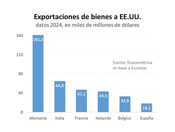 Sin embargo, no todo el bloque europeo sería afectado de la misma manera por los aranceles. Alemania e Italia son entre los países que más exportan a Estados Unidos.