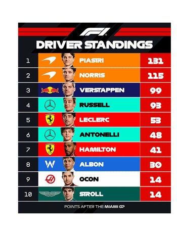 LA TABLA DE POSICIONES DEL CAMPEONATO DE PILOTOS: