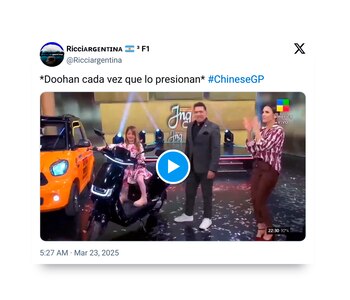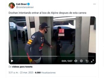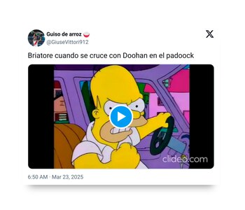 Una vez que terminó la prueba, los fanáticos comenzaron a reaccionar en las redes sociales por lo sucedido en las últimas vueltas y estallaron los memes tras la actuación de uno de los pilotos titulares de Alpine. “Briatore con Doohan una vez que logró entrar al box”, mencionó uno de los usuario de la red social X (antes Twitter) en tono gracioso. Otro hizo una parodia de un diálogo con el piloto y el equipo Alpine. “Doohan, necesitamos puntos”, dice el inicio de la broma, que culmina con la supuesta respuesta del australiano (“Doohan: sí”)
